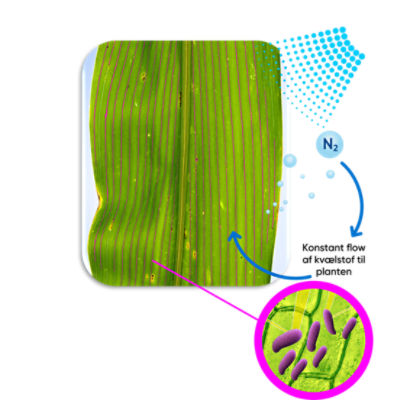 BlueN forsyner planten med en alternativ, bæredygtig kilde til kvælstof, som reducerer afhængigheden af kvælstofoptagelse i jorden og sikrer, at planten har kvælstof nok til hele vækstsæsonen.