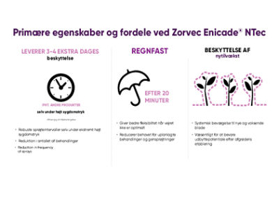 *Bemærk: Zorvec Enicade blev i 2022 solgt i Danmark i en sampakke med Azuleo, der indeholder aktivstoffet cyazofamid. Azuleo har mistet sin godkendelse og må ikke opbevares eller anvendes efter 30. april 2023. Etikette og SDS er stadig tilgængelig på denne side indtil forbudsdato.